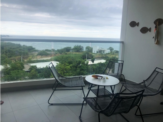 Cuenta con 2 habitaciones y 3 baños, sala-comedor, cocina, zona de labores 1 deposito y 2 parqueaderos adicional a eso cuenta con una increible vista al mar ideal para disfrutar de los bellos atardeceres que nos ofrece la ciudad.